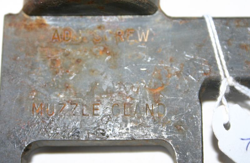 Around the round head is printed in the metal “Adj. Screw” and on the side with the 2 pins is printed “muzzle clamp”.